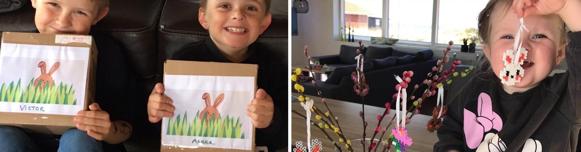 Lok påskeharen frem er en sjov og hyggelig måde at samle ind på. For hver indsamlede plovmand kreerer deltagerne en påskehare. Og med knap 12.000 kr. indsamlet har Asger og Victor fået travlt med saks, papir og limstift.