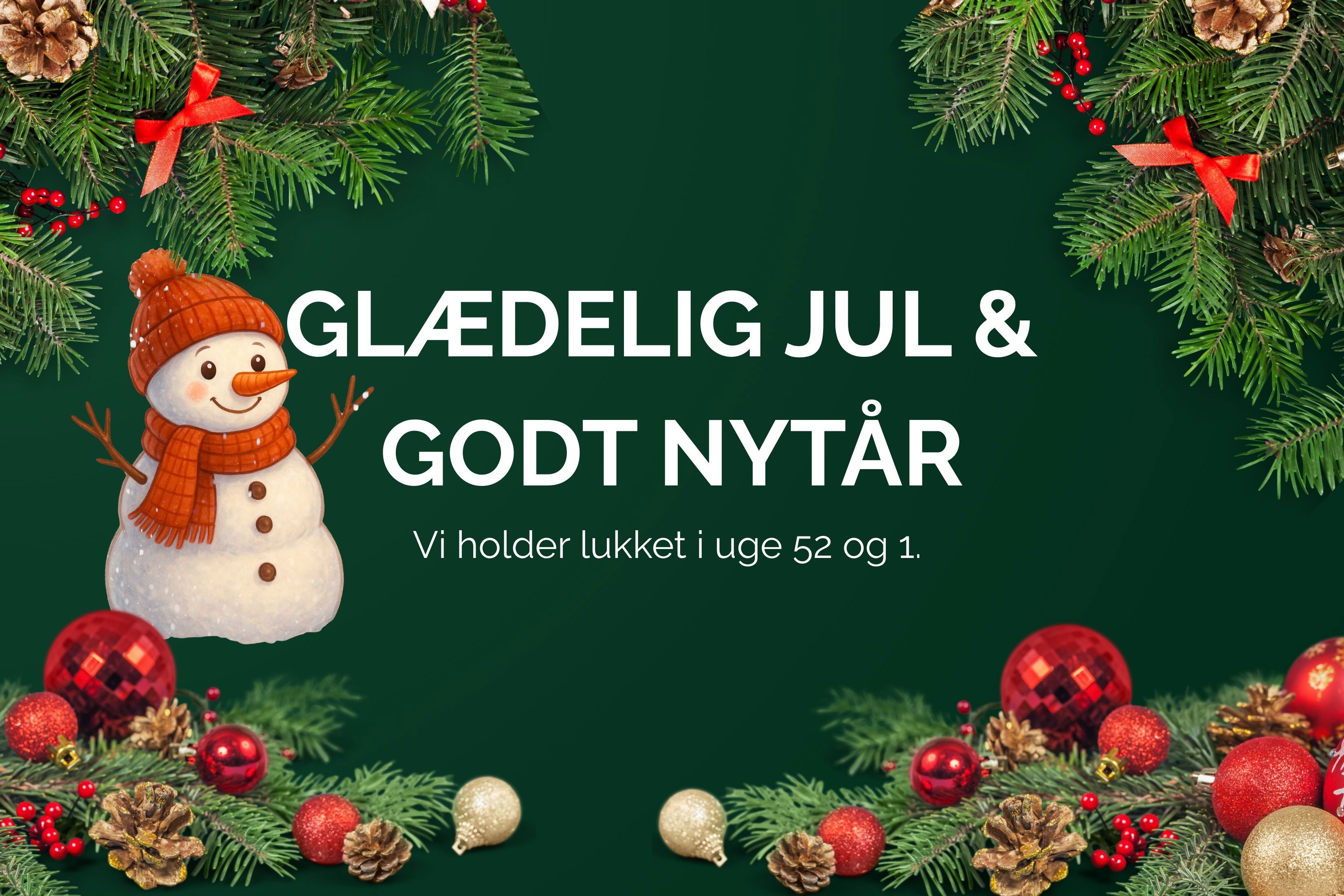 Billede af glædelig jul og godt nytår - vi holder lukket i uge 52 og 1