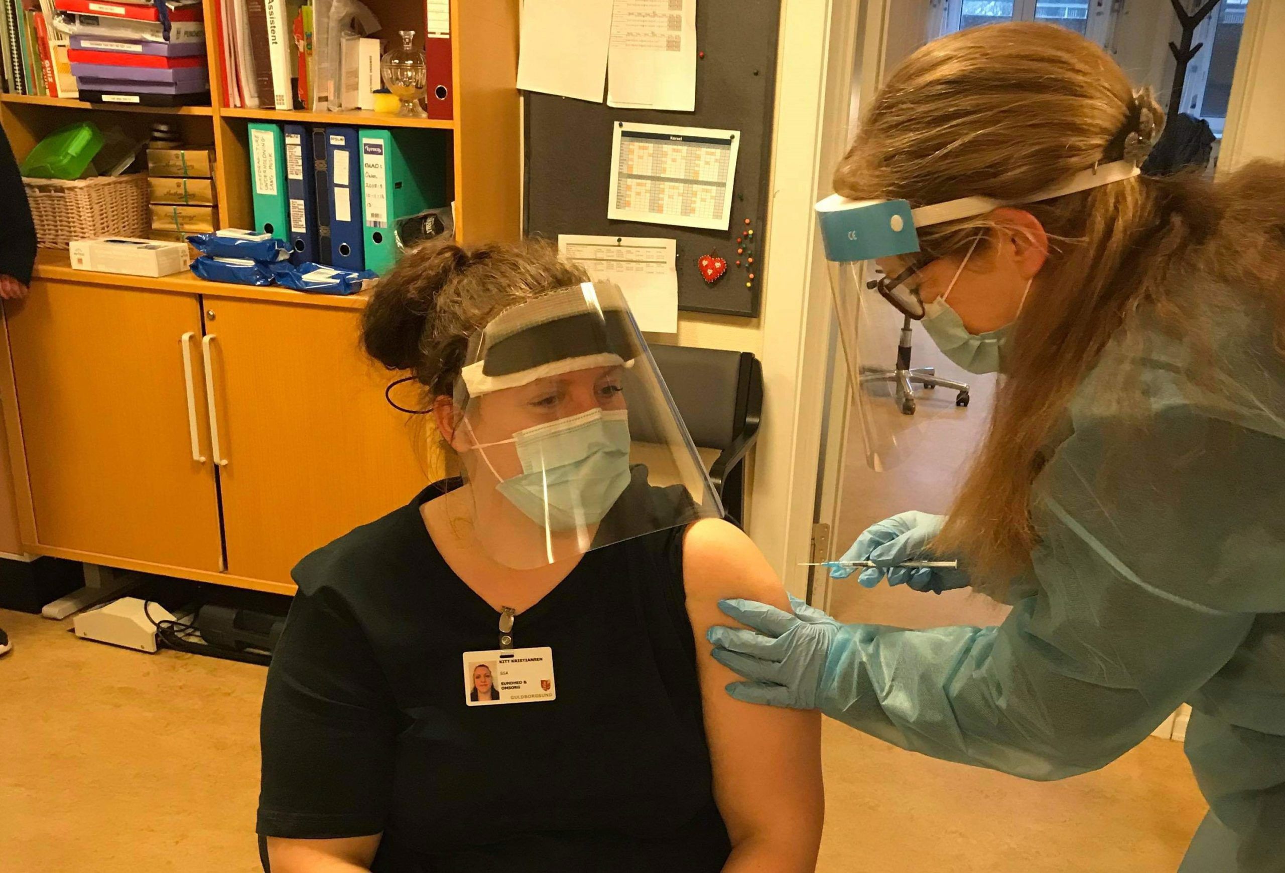 Sådan siger Kitt Lærke Kristiansen, der her i efter middag fik første del af vaccinen mod Covid-19. Det foregik på hendes arbejdsplads, som er et plejecenter. Borgerne skulle vaccineres, og som kroniker stod Kitt på venteliste til at få et stik, hvis der blev doser i overskud.