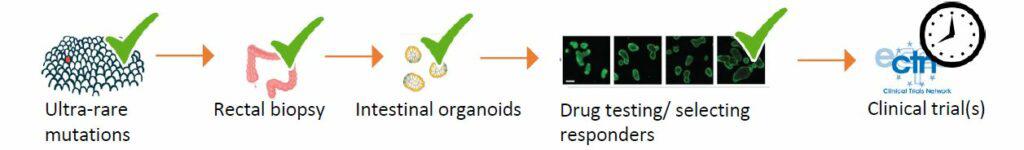 Screeningerne af medicin foretages på de såkaldte organoider, eller ”mini-tarme”, som er kunstigt dyrkede organer, fremstillet med vævsprøver fra de 502 patienter, der er med i forskningsprojektet. Efter screening gennemføres der kliniske studier, hvor man på forsøgspersoner tester de medicinkandidater, der viste god effekt på patienters organoider.
