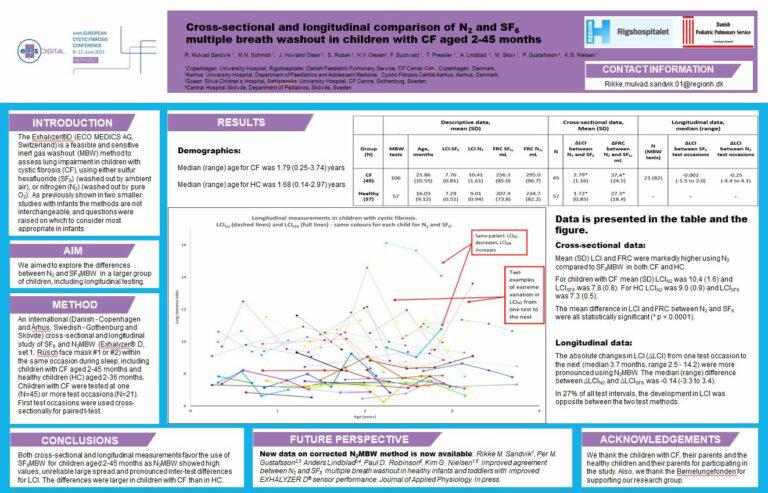 På den europæiske cystisk fibrose kongres, som løb af stablen den 9.-12. juni som en digital begivenhed, præsenterede læge og ph.d. på Dansk BørneLunge Center, Rikke Mulvad Sandvik, sin forskning. Hun har sammenlignet to forskellige metoder til at måle lungefunktion hos helt små børn fra nul til fire år og har brugt den ene til at beskrive, hvordan deres lungefunktion udvikler sig.